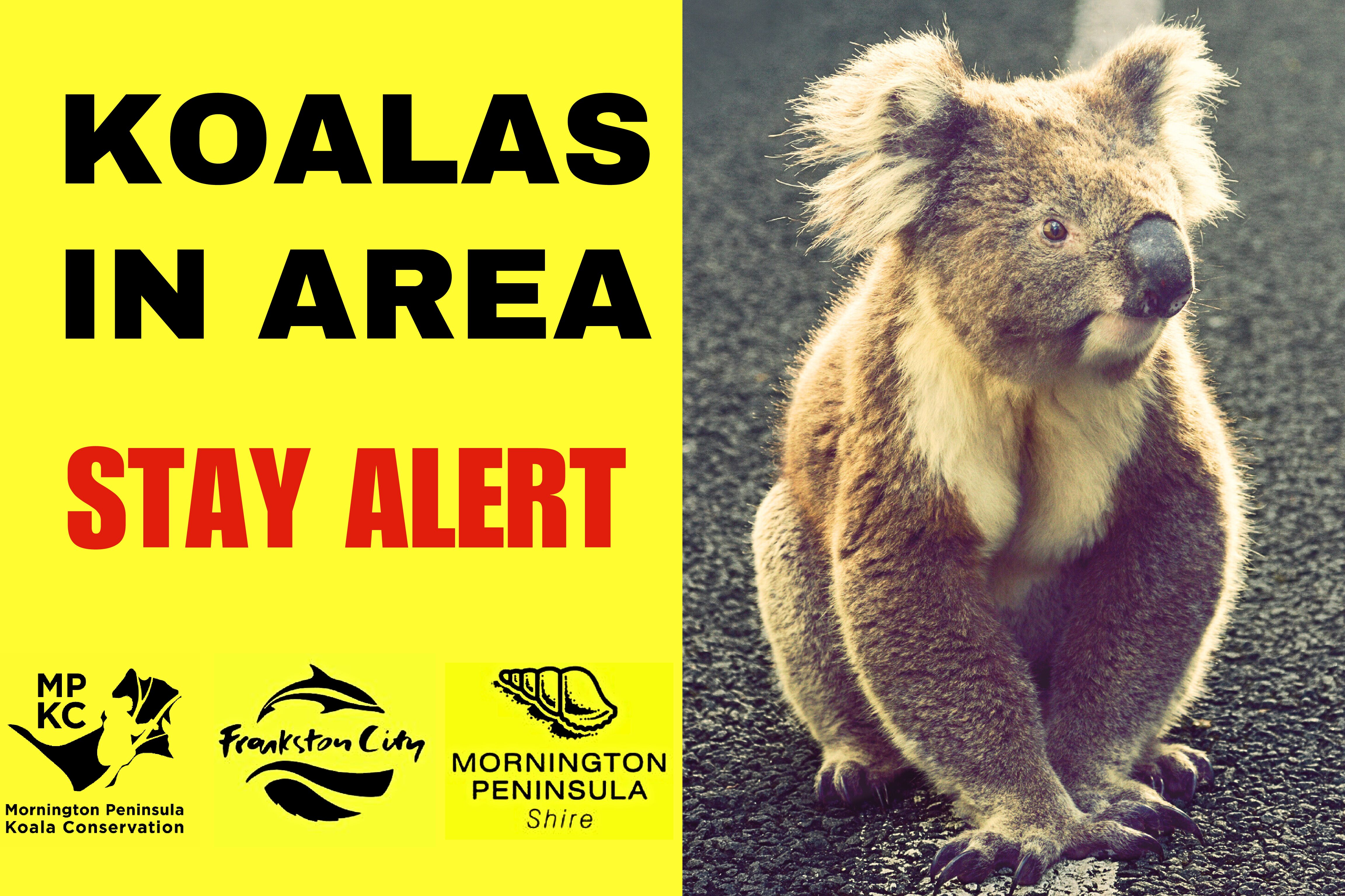 Each year we work closely with the Mornington Peninsula Shire, Frankston City Council and Vic Roads to identify the roads across the Mornington Peninsula where koalas are being hit and/or killed. From spring through to autumn when koalas are on the move, our road safety signs are installed to urge drivers to slow down and stay alert in these high risk areas.